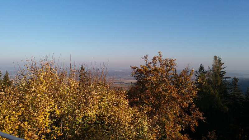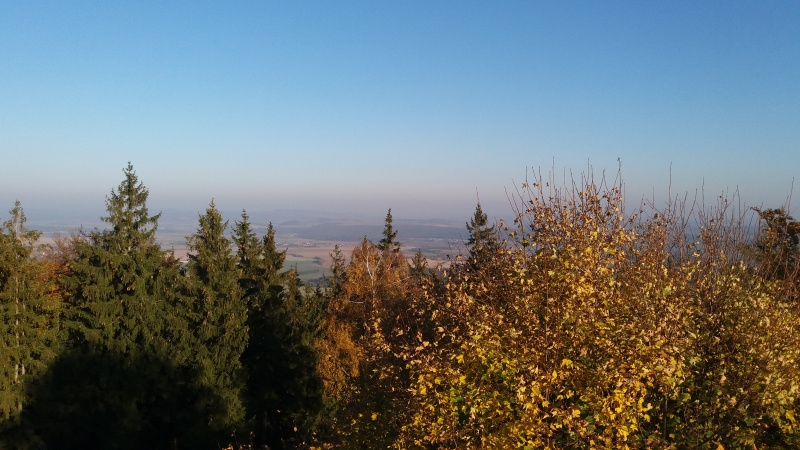 Nejvyšší bod trasy. V sezóně tu najdete otevřenou rozhlednu s občerstvením – domácí klobásky, káva, limonády. Za dobré viditelnosti dohlédnete až na Krkonoše!