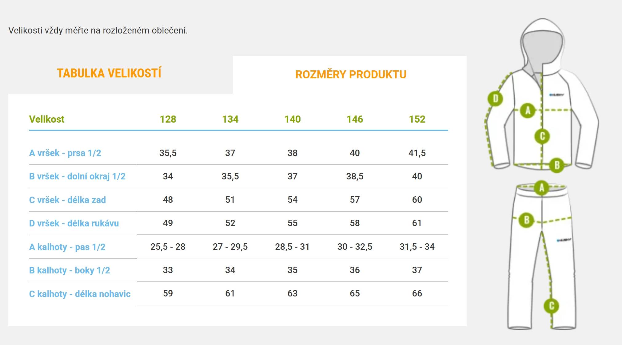Klíčové vlastnosti a parametry dětského termoprádla Husky Active winter Tombo