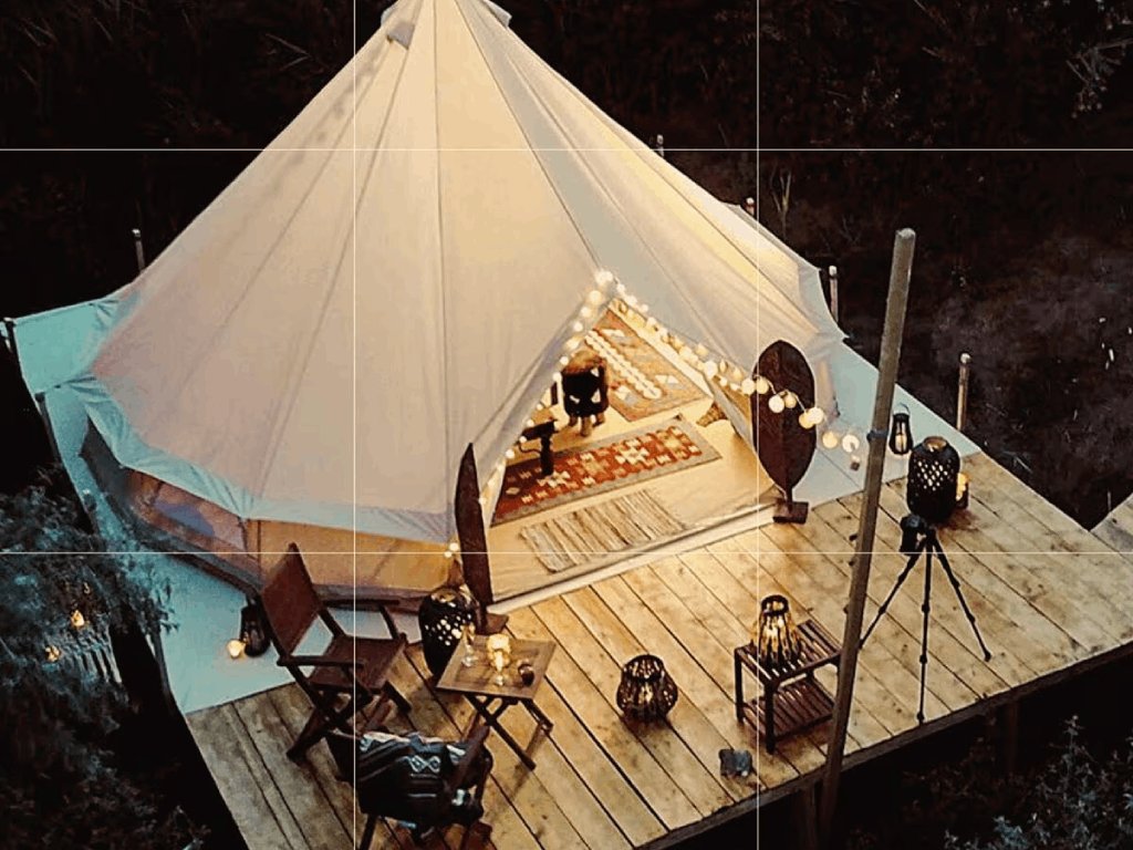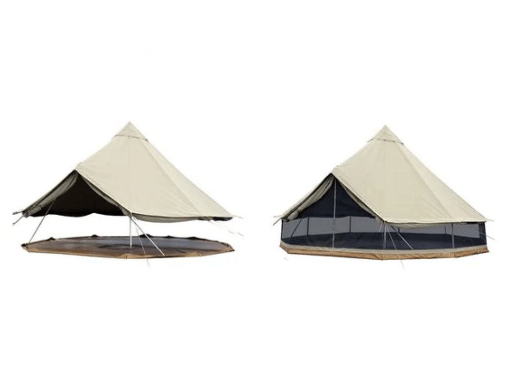 - Průduchy pro vyvedení případných komínů při vytápění stanu z ohně odolných materiálů.
