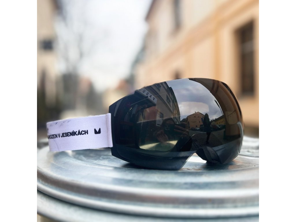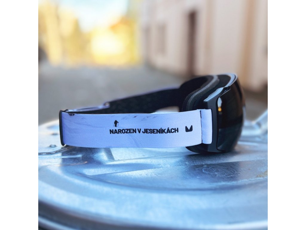 K tomu design s fotkami z Jeseníků od Járy Sijky, jednoduchý logování, zorník Black Mirror s anti-fog úpravou, 14mm polstrováním a lehce nastavitelný pásek se silikonovými pruhy zevnitř pro lepší přilnavost na helmu.